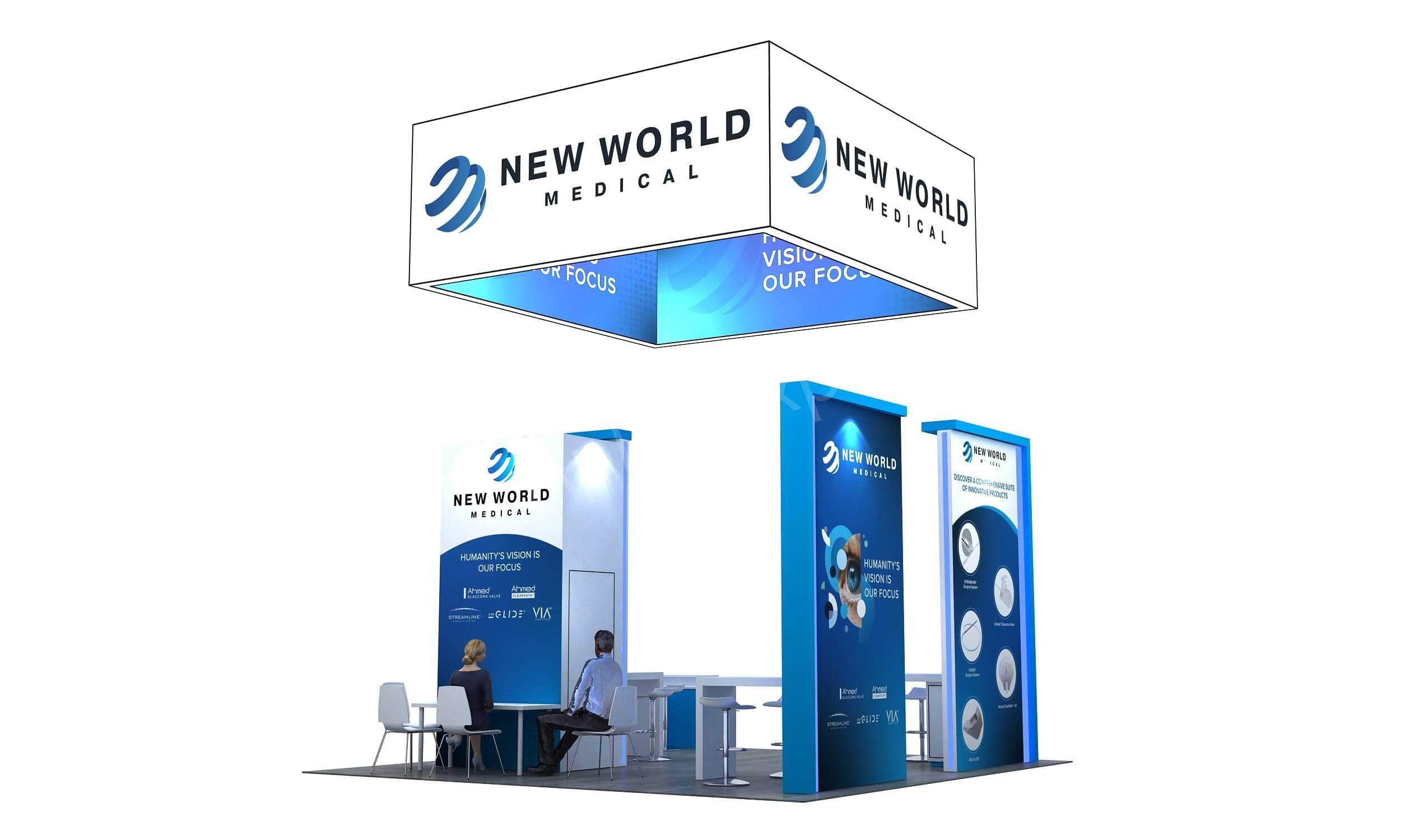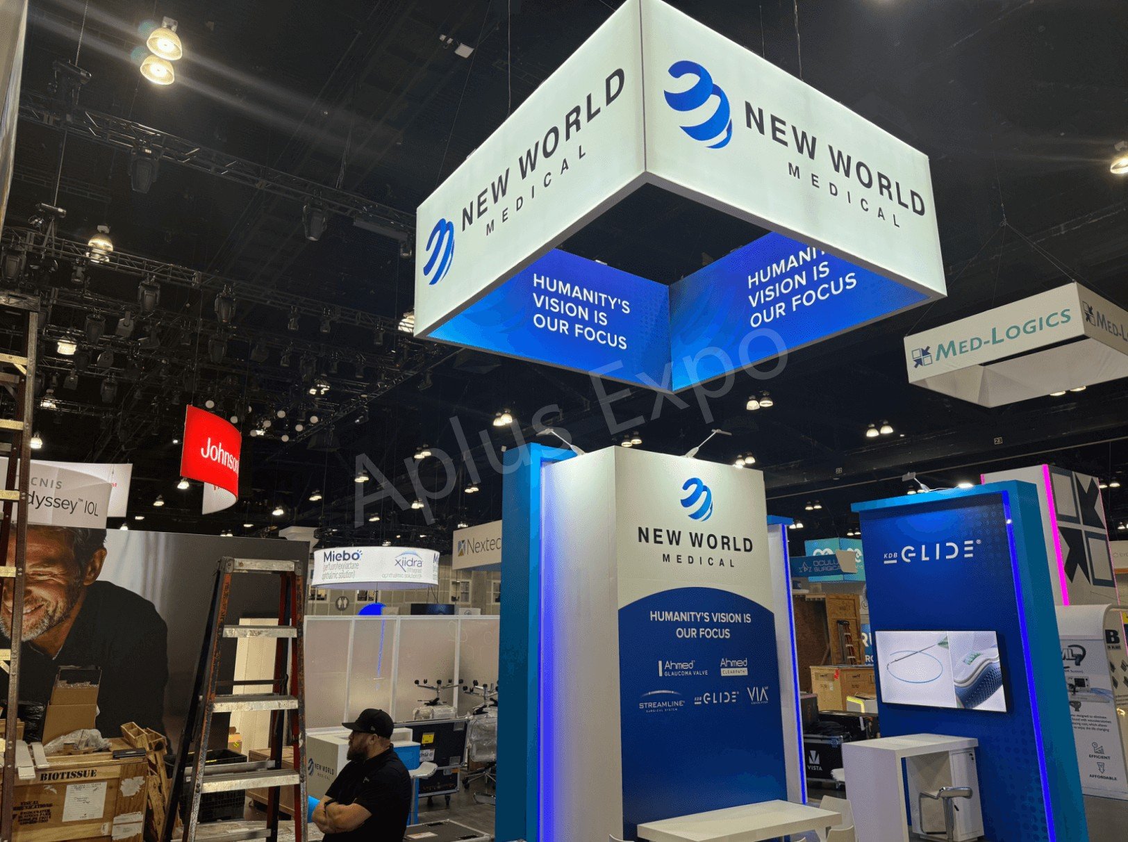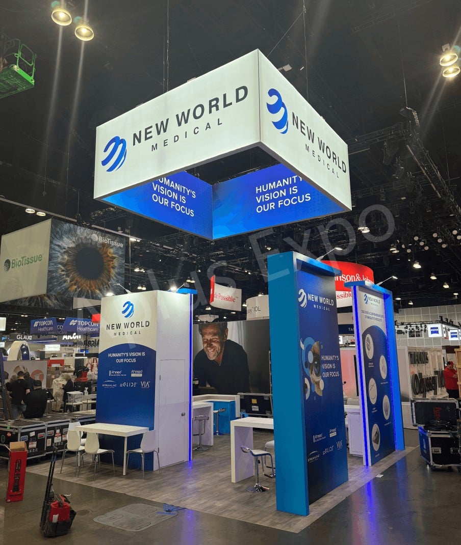 ✖️Aplus Expo presenta un stand de feria premium de 20′ x 20′ para New World Medical en ASCRS 2025.
