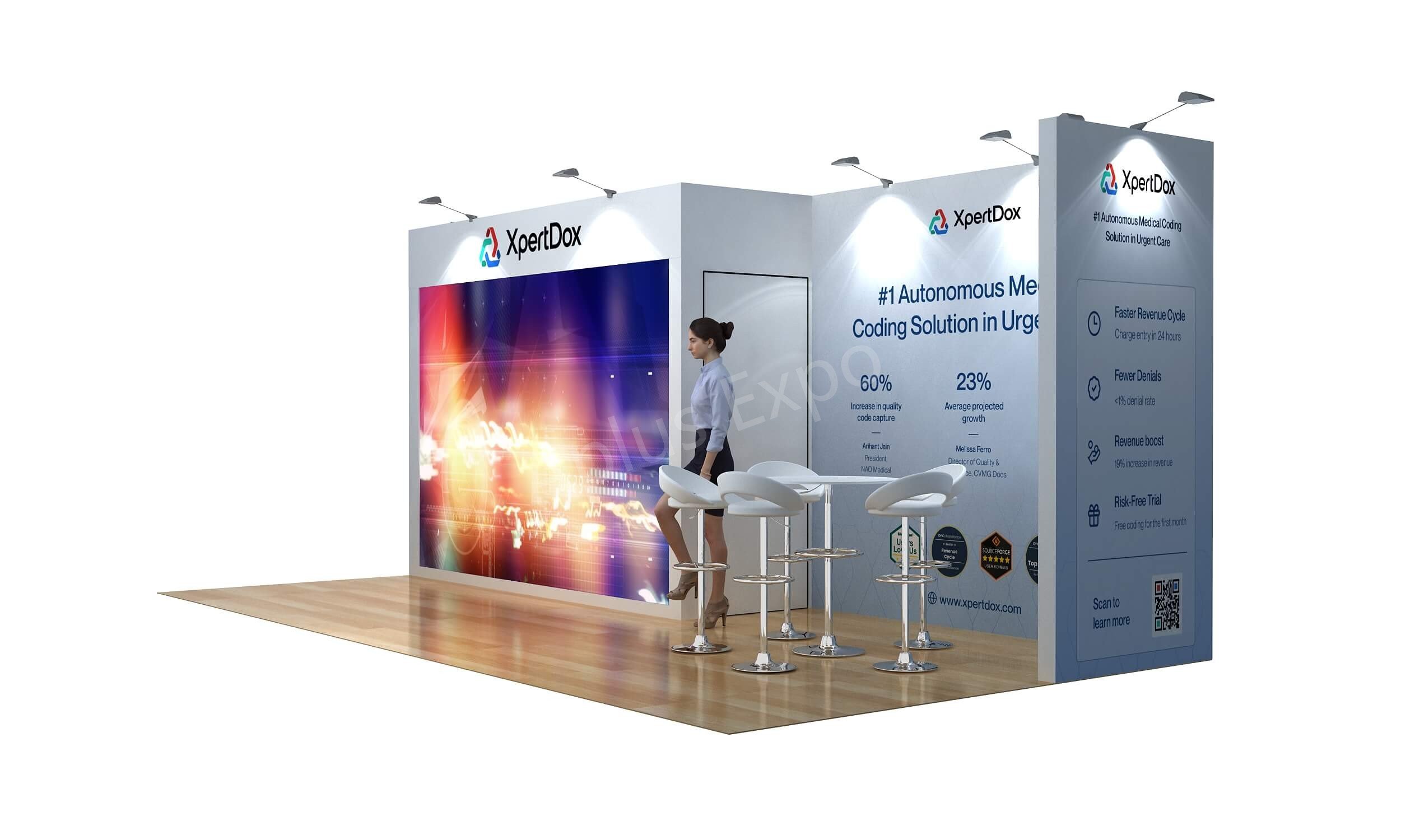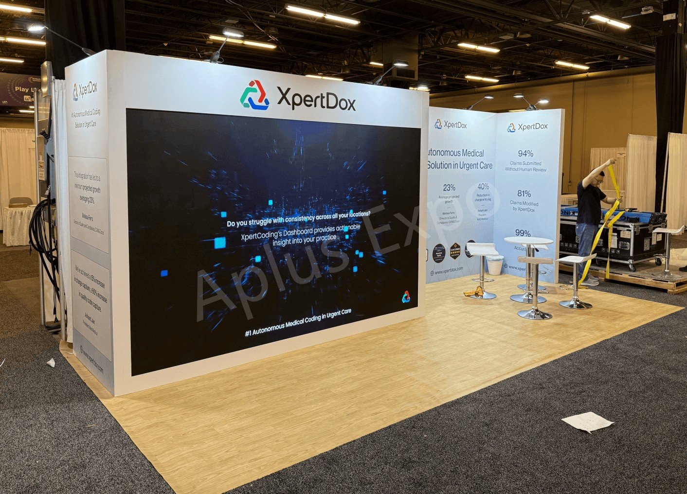 ✖️Aplus Expo presenta un stand de feria premium de 10′ x 20′ para UCA Dallas en XpertDox 2025.