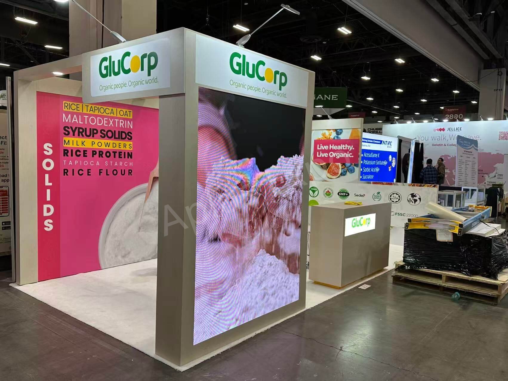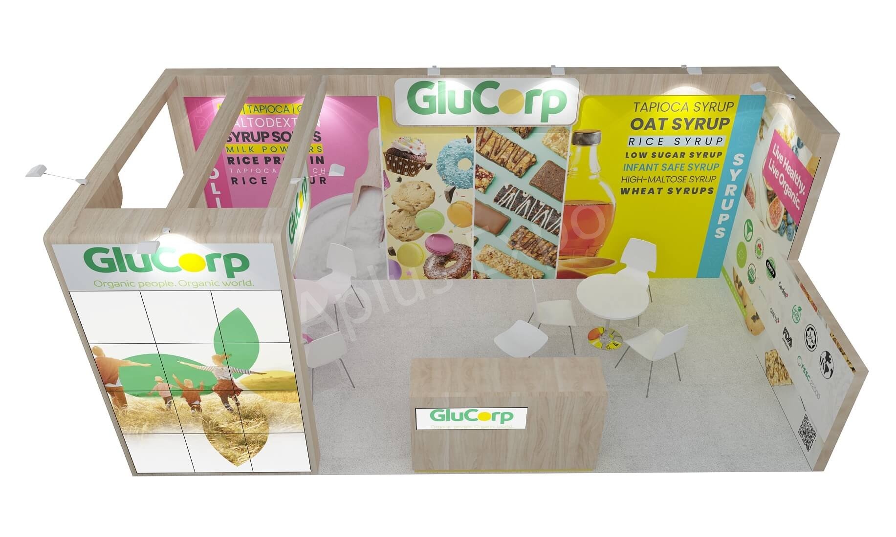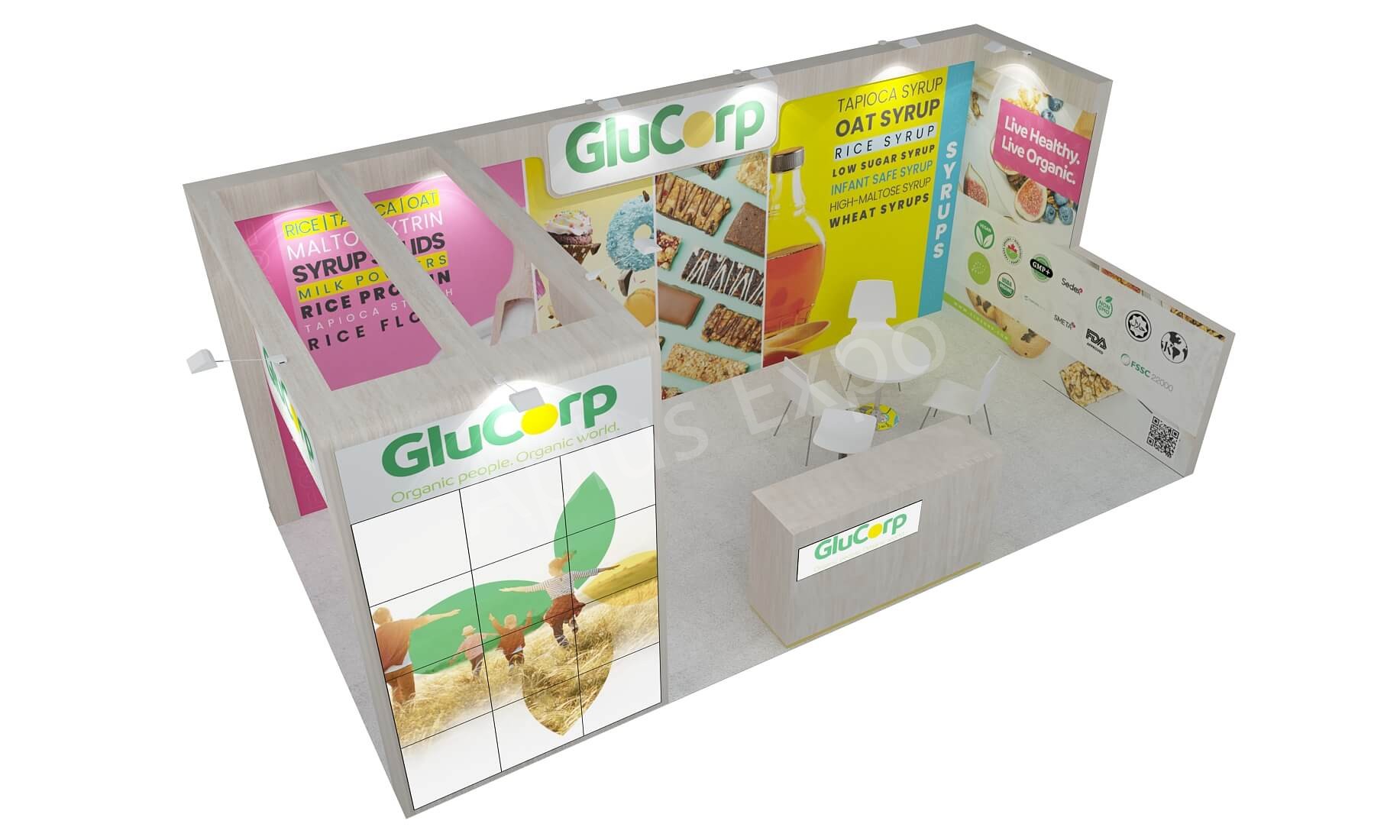 Aplus Expo présente un stand haut de gamme de 10′ x 20′ pour Glucorp à SSG 2025.