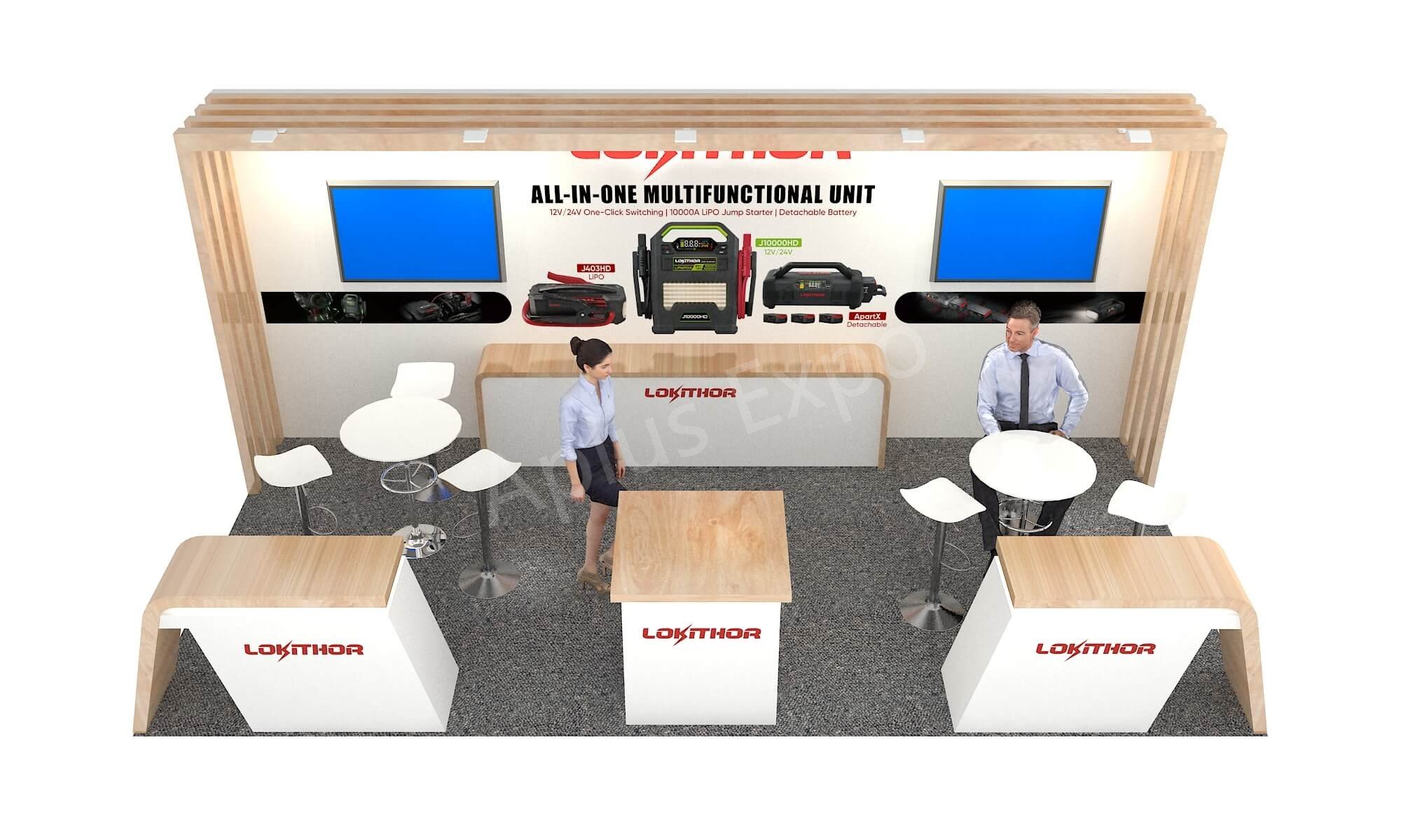 ✖️Aplus Expo présente un stand d'exposition haut de gamme de 10′ x 20′ pour Lokithor à SEMA 2025.