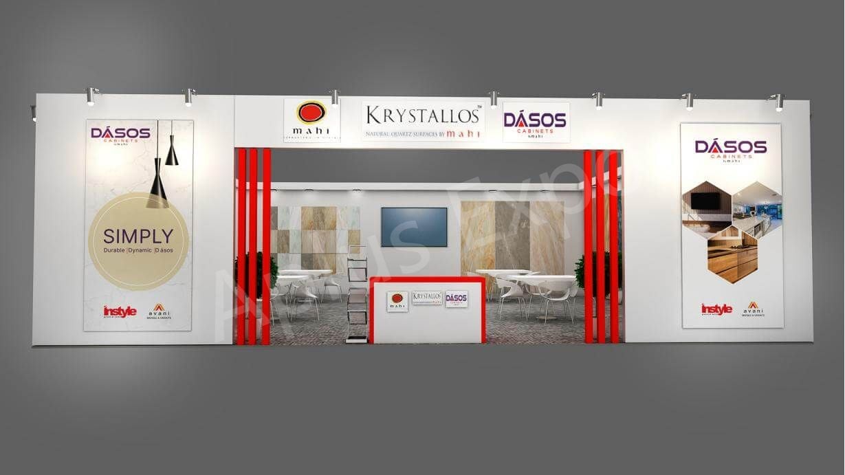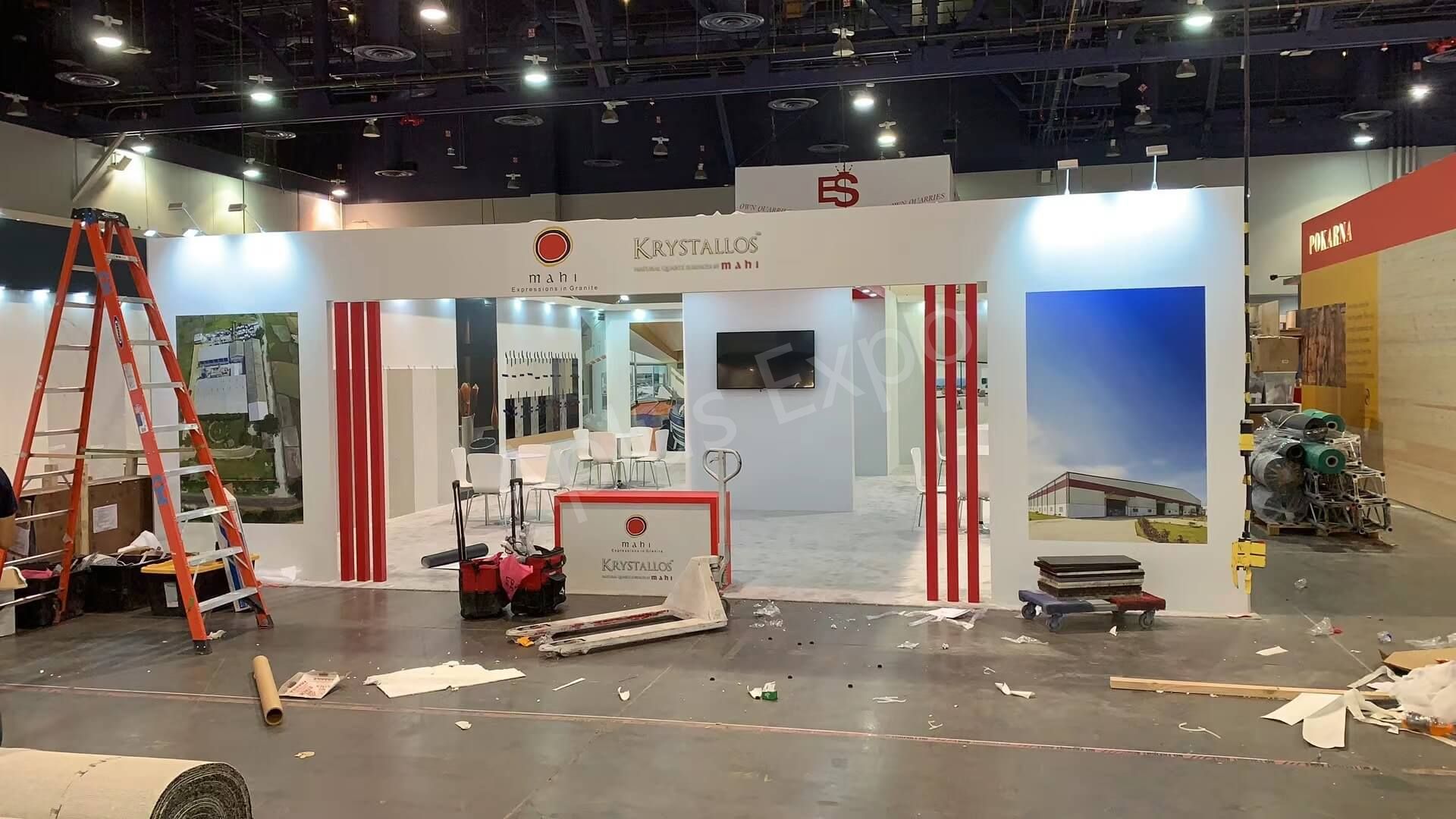 • Aplus Expo présente un stand d'exposition premium de 30′ x 30′ pour MAHI à COVERINGS 2023, mettant en valeur la marque MAHI avec excellence.