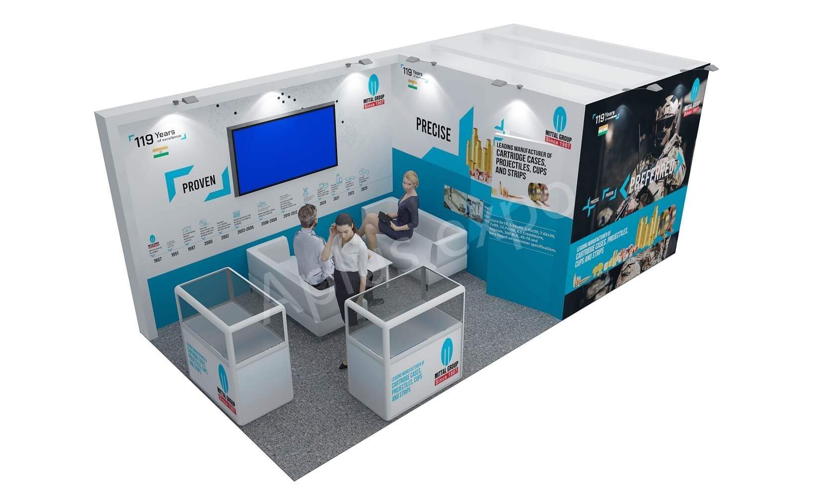 ✖️Aplus Expo présente un stand d'exposition premium de 10′ x 20′ pour Mittal au salon Shot 2026.