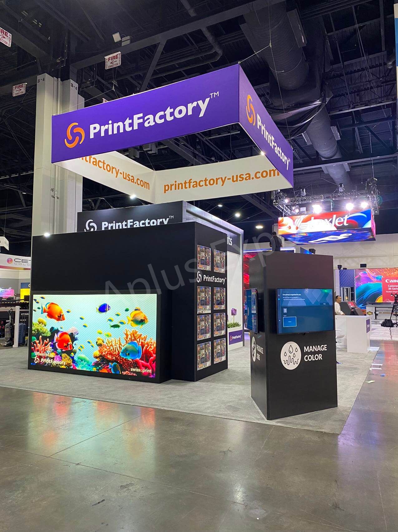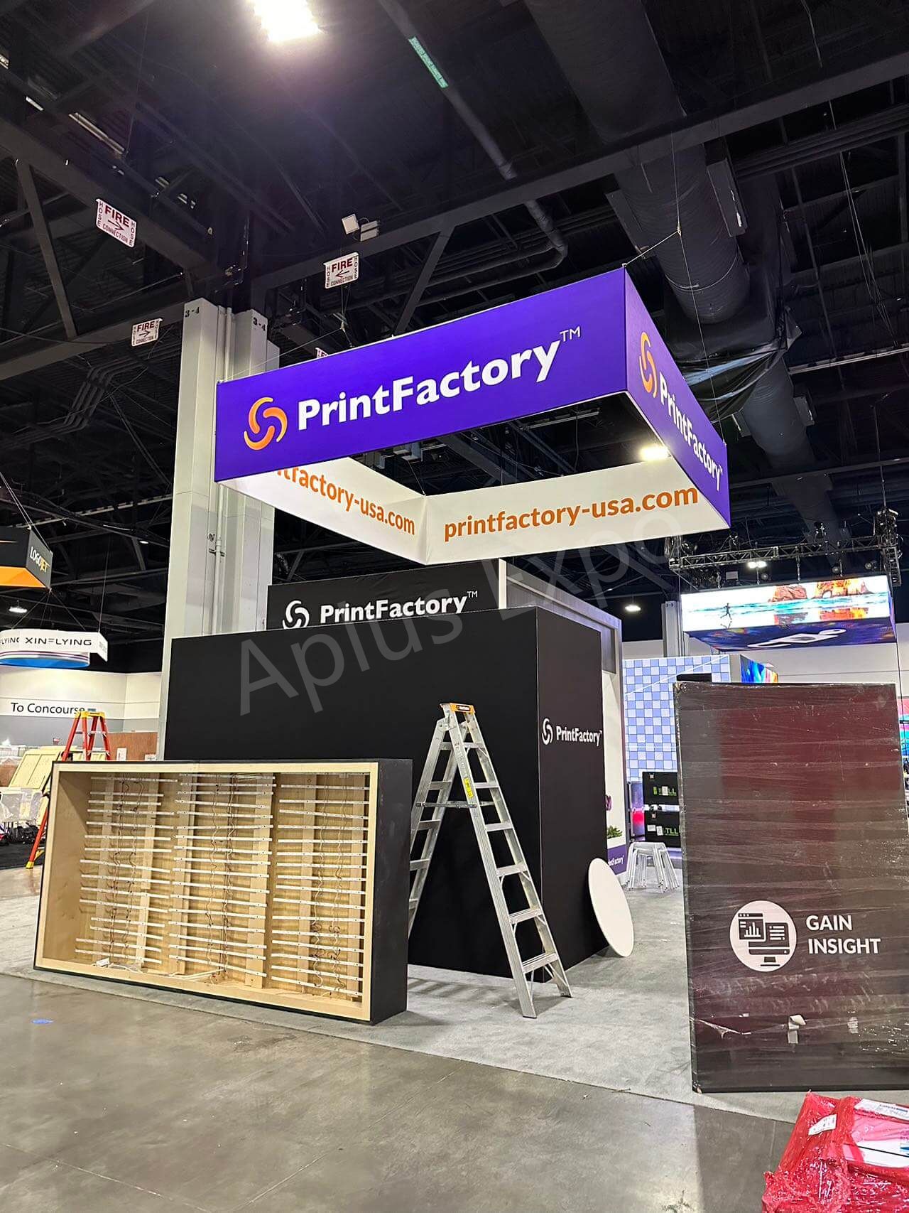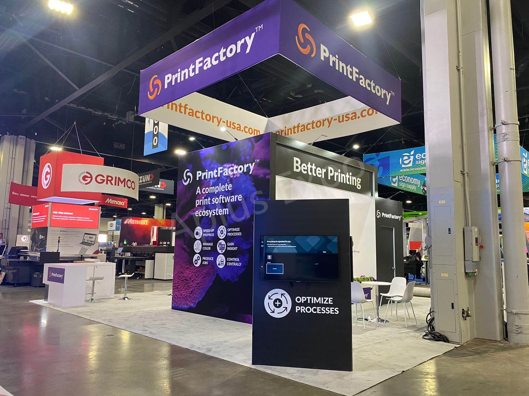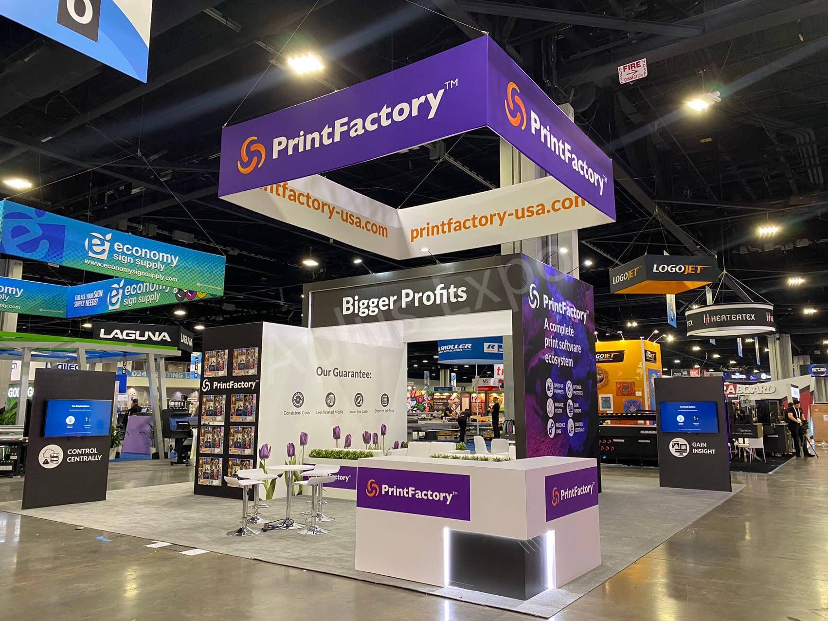 • Aplus Expo présente un stand d'exposition premium de 30′ x 30′ pour PrintFactory à Printing United 2023,