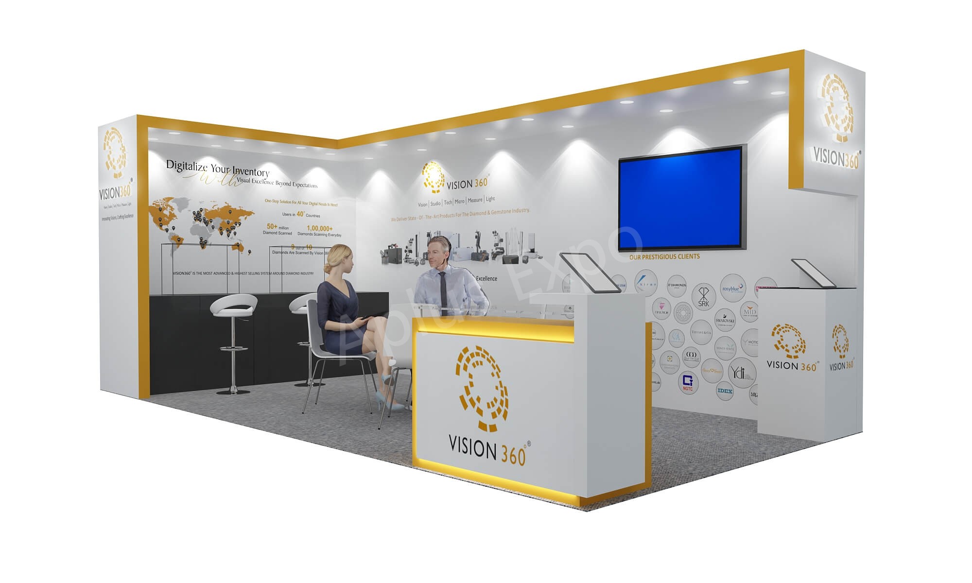 ✖️Aplus Expo présente un stand haut de gamme de 10′ x 20′ pour VISION 360 au salon JCK 2025.