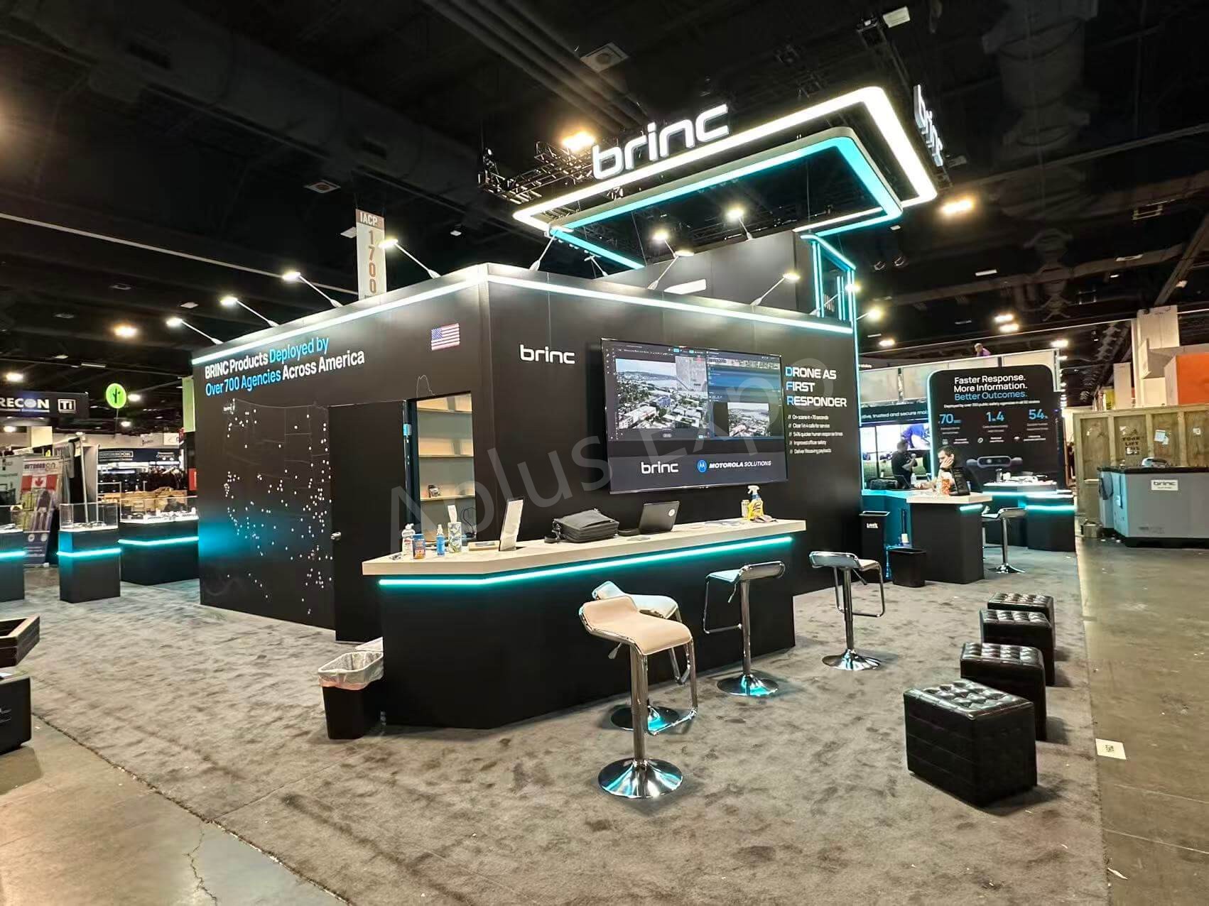 Aplus Expo presents a premium 40×50′ trade show booth for brinc at IACP 2025.